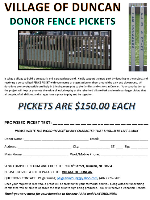 - Duncan Donor Fence Picket ( PDF / 347 KB )